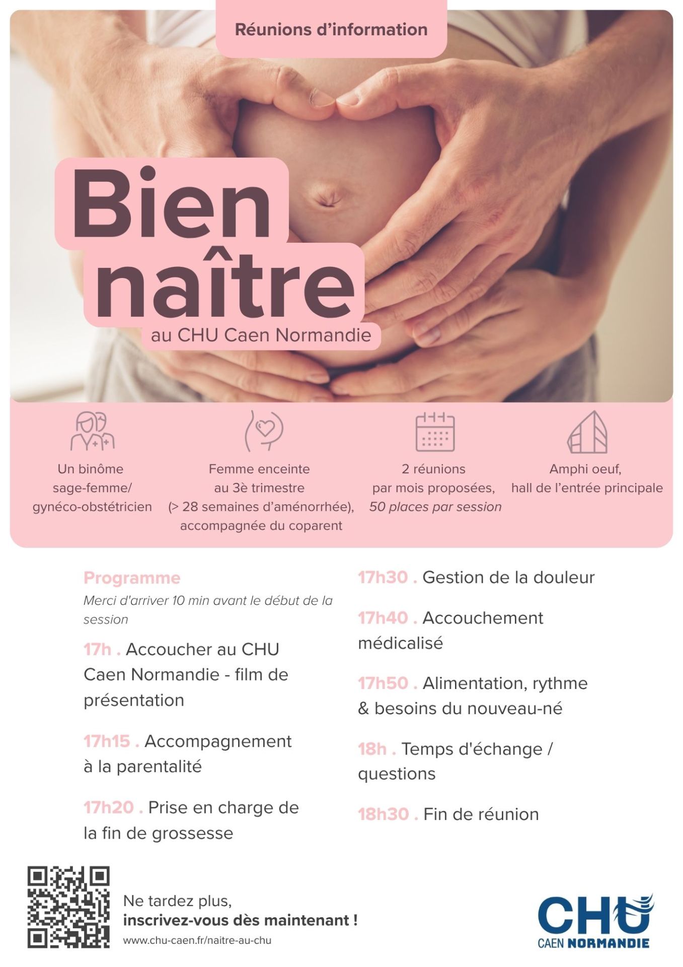 Inscription obligatoire sur le site de la maternité du CHU de Caen : https://www.chu-caen.fr/naitre-au-chu/