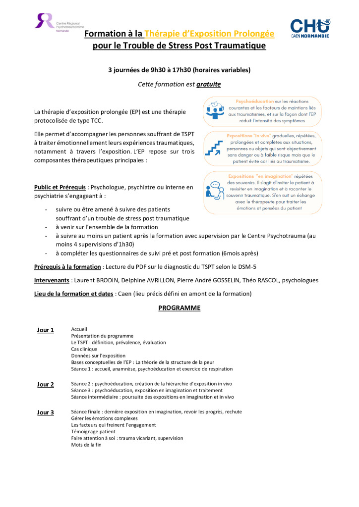 - Formation à la Thérapie d’Exposition Prolongée (EP) : Informations EP